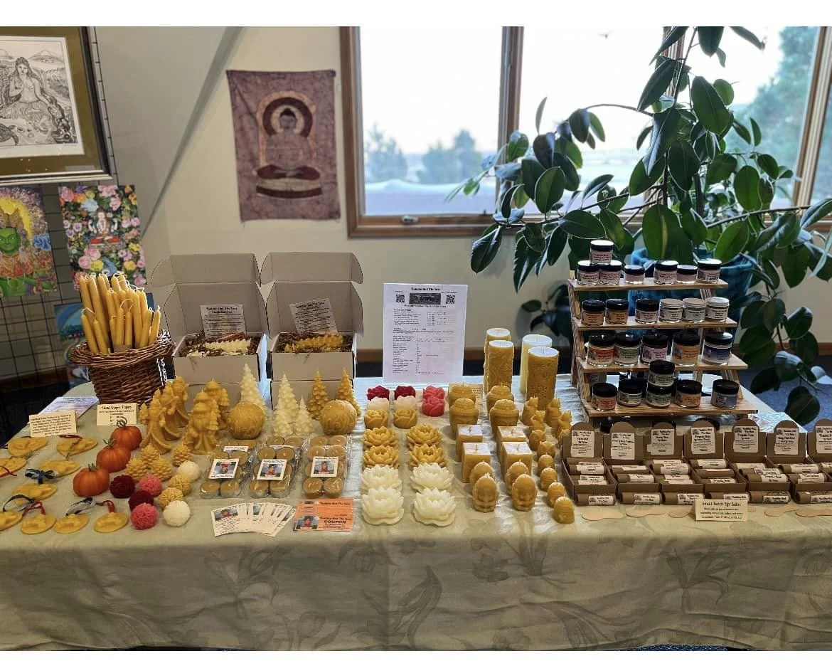 Explore an extraordinary collection of works by our talented artists such as woodblock prints (below by Faith Stone Art), original paintings and photography, pottery, natural skincare products, Ayurvedic remedies, beautiful bells and ornaments, handmade malas and jewelry, and so much more!